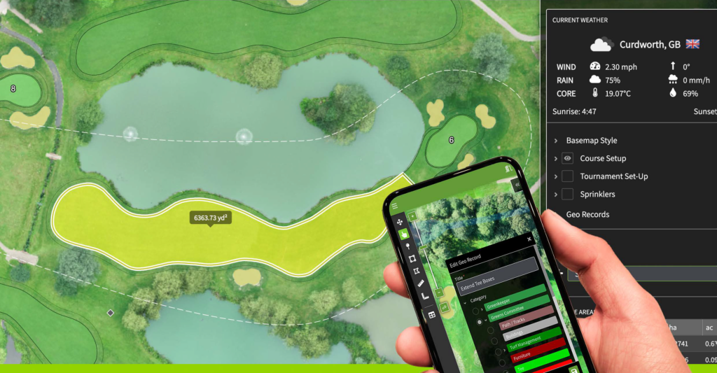 With sub 10cm accuracy across your entire course at your finger tips from any web enabled desktop or mobile device you can measure distance and area from home or office as precisely as you could on the course.